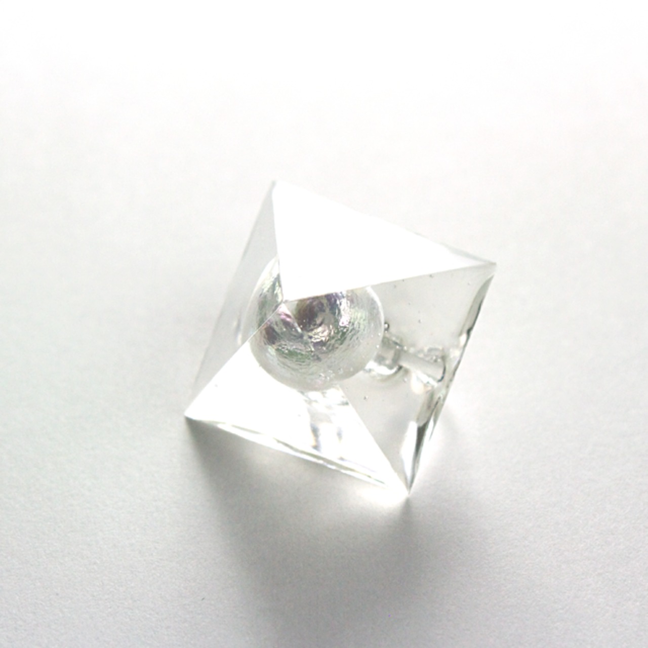 クリスタルレジンのピラミッド型のノンホールピアスです。