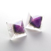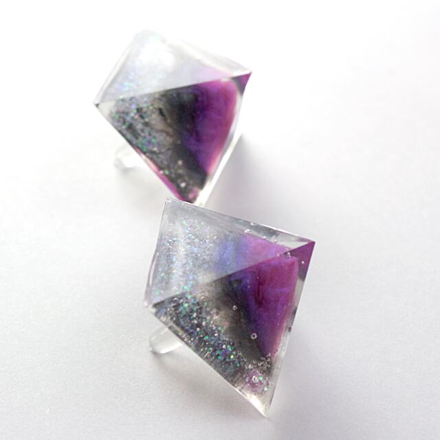 パープルとブラック、細かなラメをクリスタルレジンで閉じ込めたピラミッド型のピアスです。