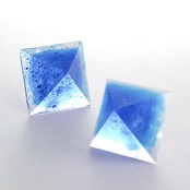 シンプルなブルーをクリスタルレジンで閉じ込めたピラミッド型のピアスです。