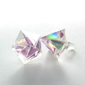 DVDの破片をクリスタルレジンで閉じ込めたペンタゴン型のピアスです。