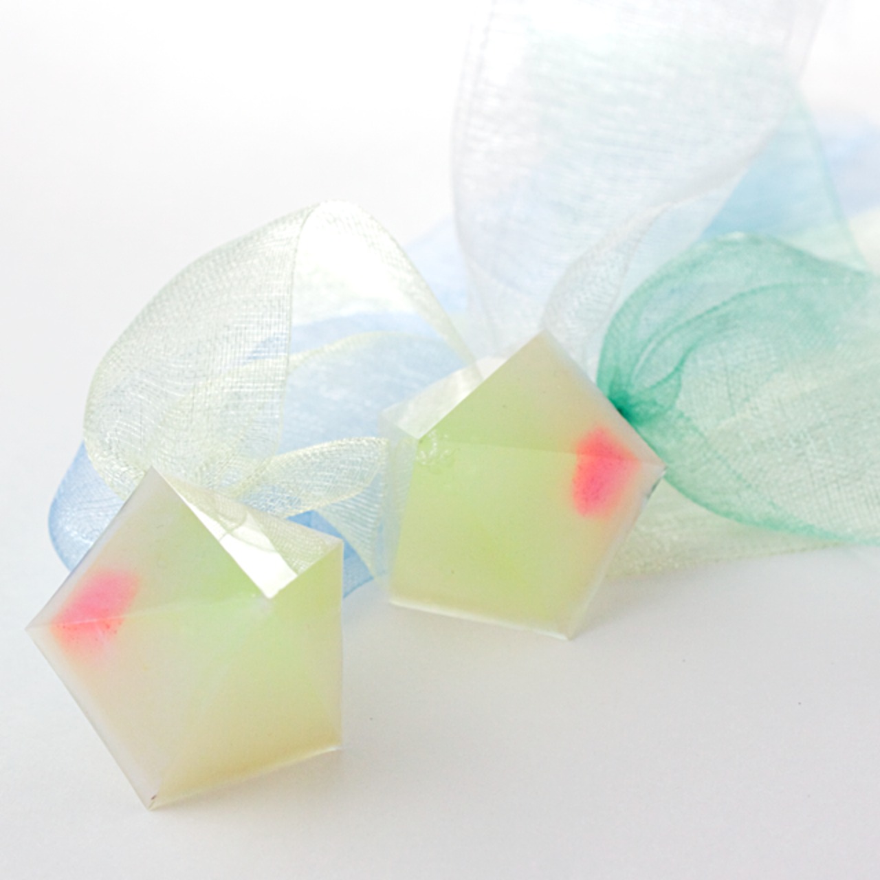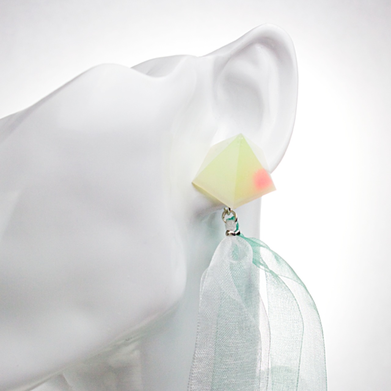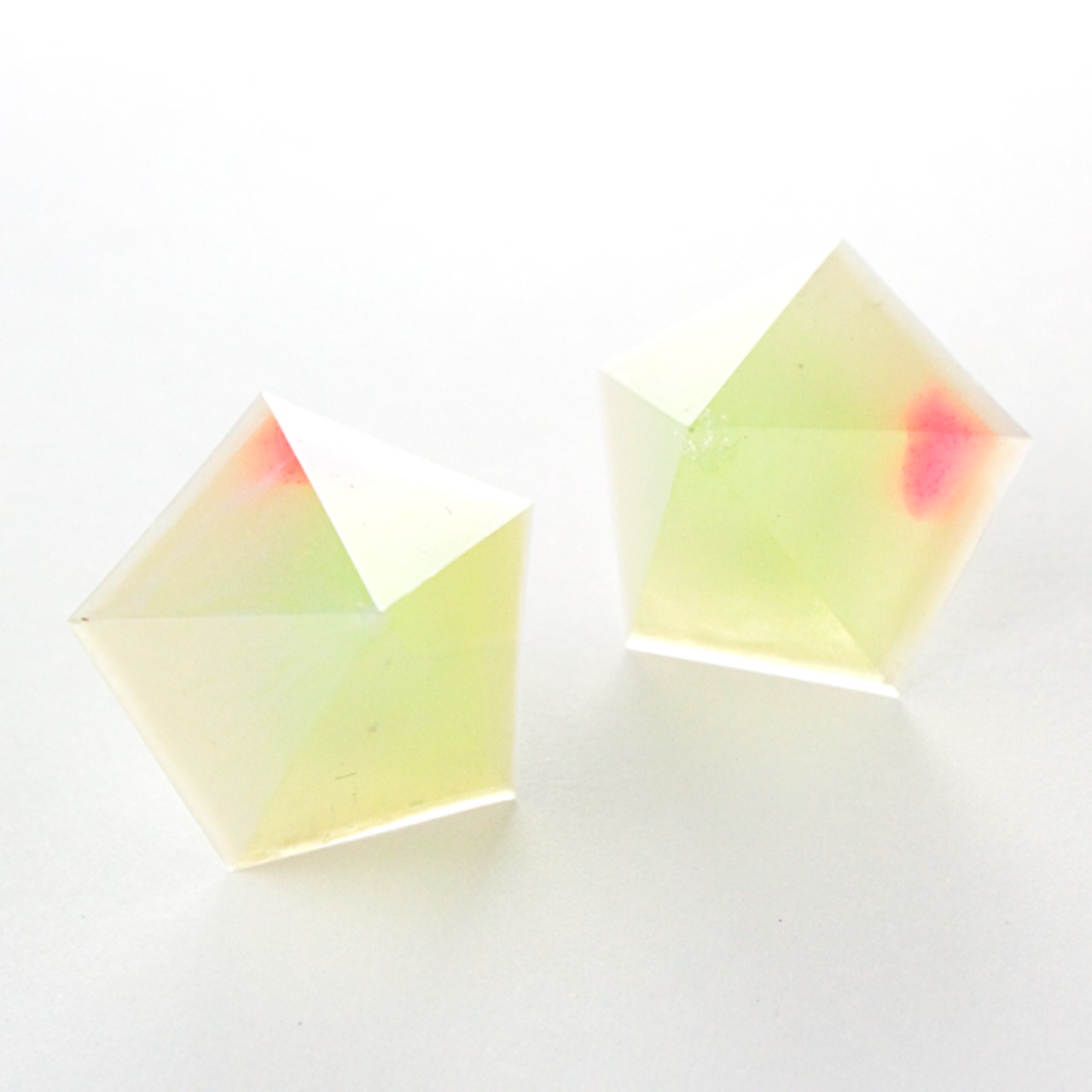 偏光のカラーをクリスタルレジンで閉じ込めたペンタゴンピアスです。