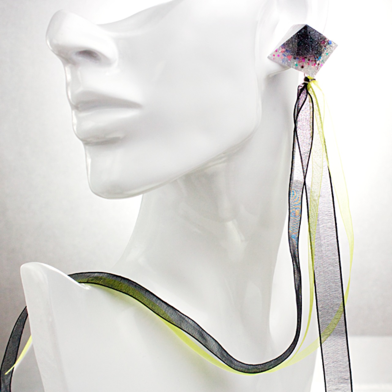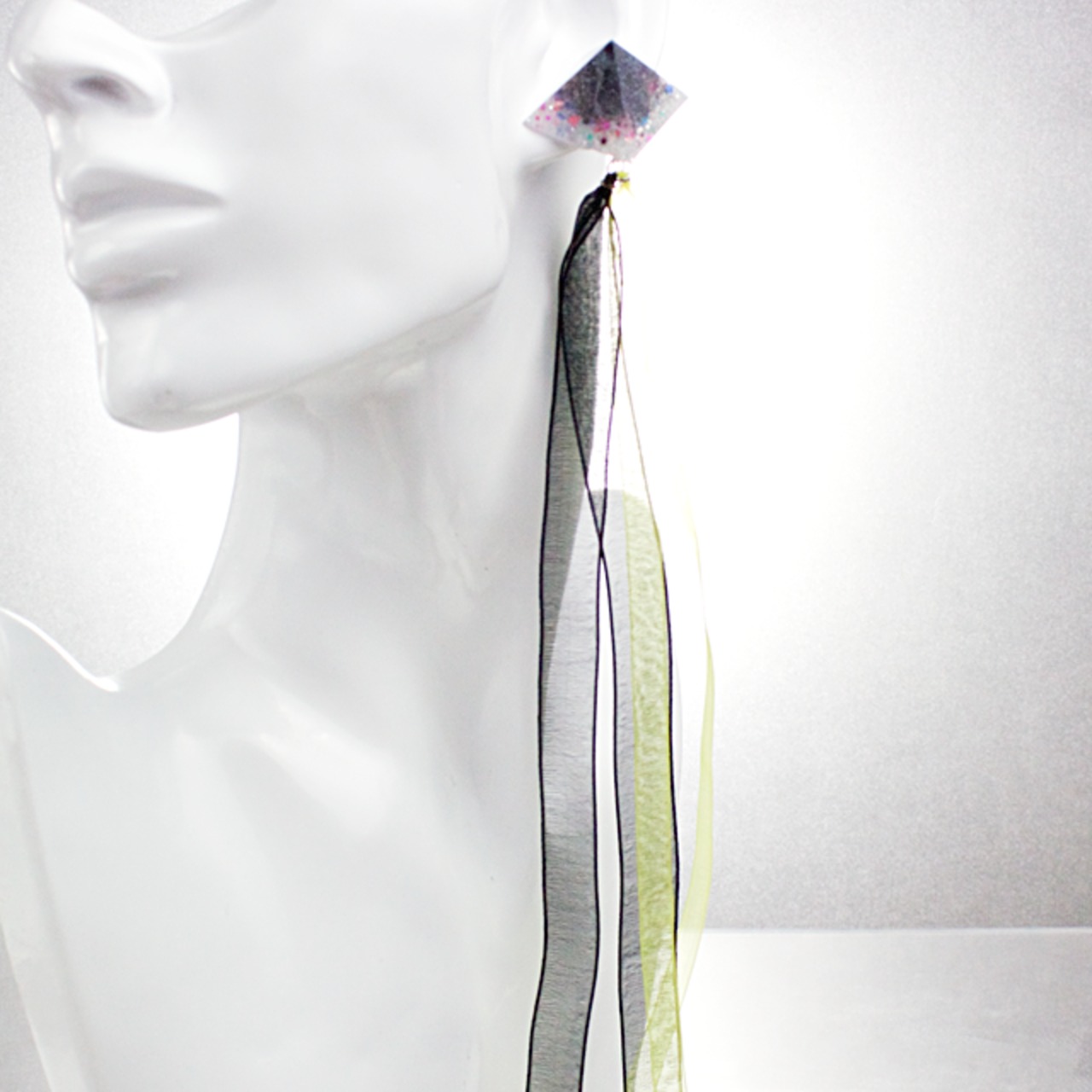 ピラミッドリボンイヤリング(コクマルカラス)