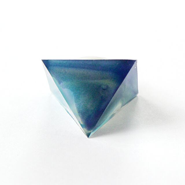ピラミッド内に様々な偏光カラーをクリスタルレジンで閉じ込めたピラミッドイヤリングです。