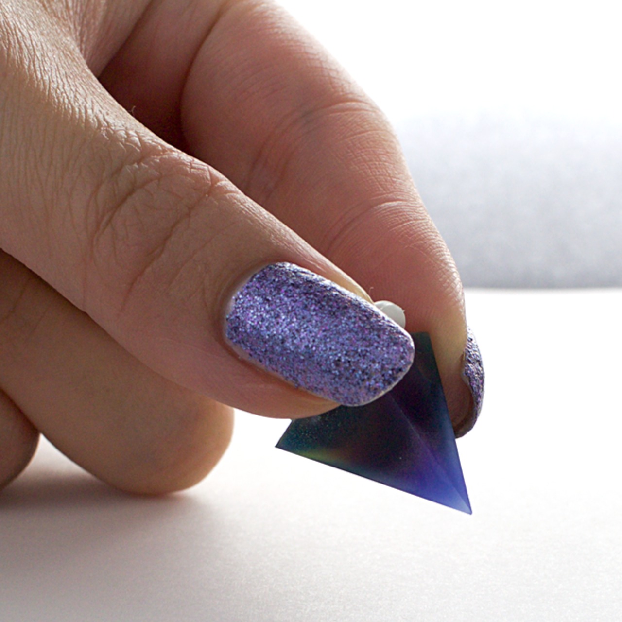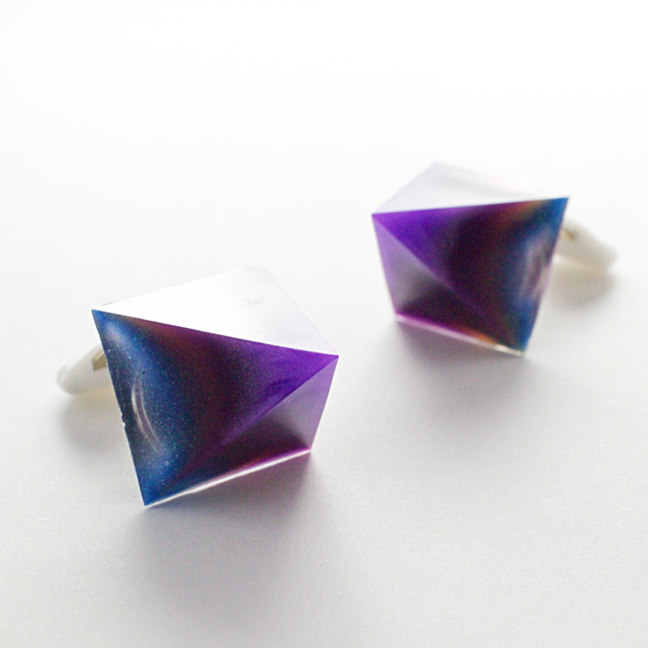 温度で色の変わるカラーと、一部分変わらないカラーをクリスタルレジンで閉じ込めた鋭角ピラミッドイヤリングです。