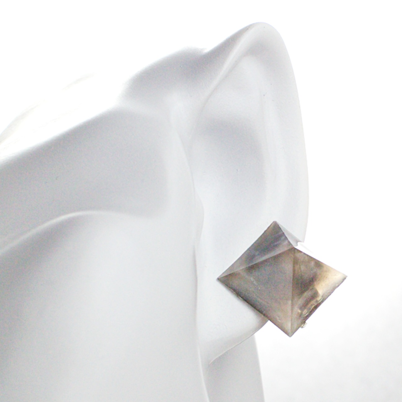 シルバーとゴールド、パープルのカラーなどをクリスタルレジンで閉じ込めたピラミッドイヤリングです。
