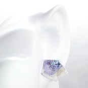 ドライフラワーや、ラメや偏光パウダーなどをクリスタルレジンで閉じ込めたペンタゴン型のピアスです。