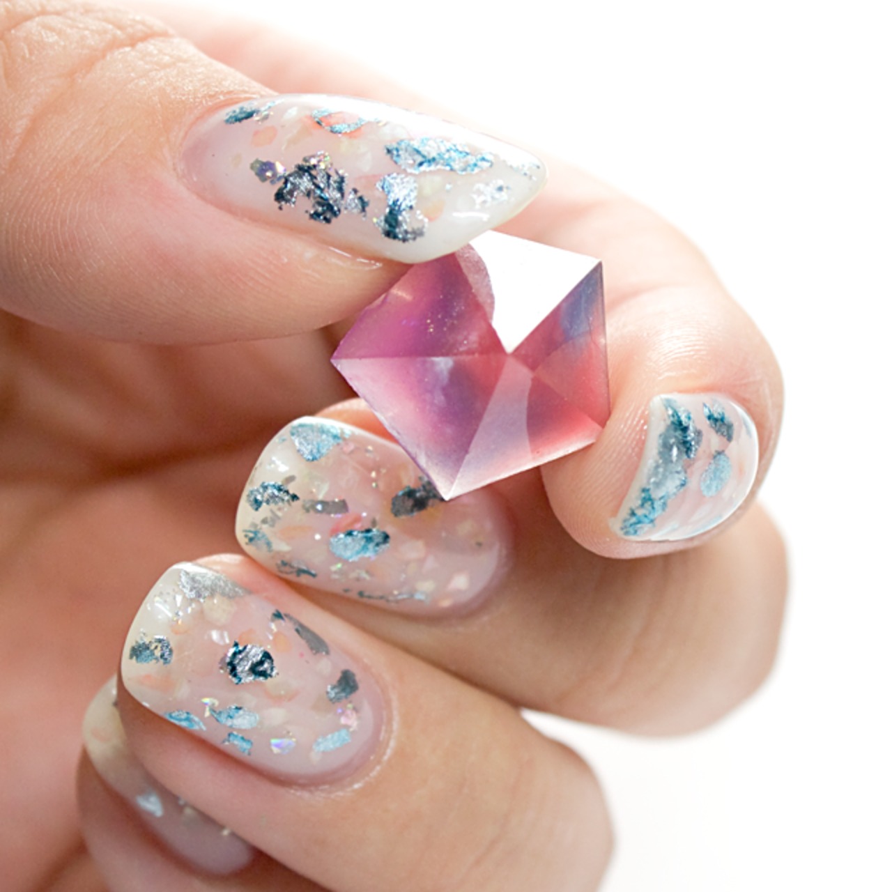 温度で色の変わるカラーをクリスタルレジンで閉じ込めたペンタゴンサーモピアスです。