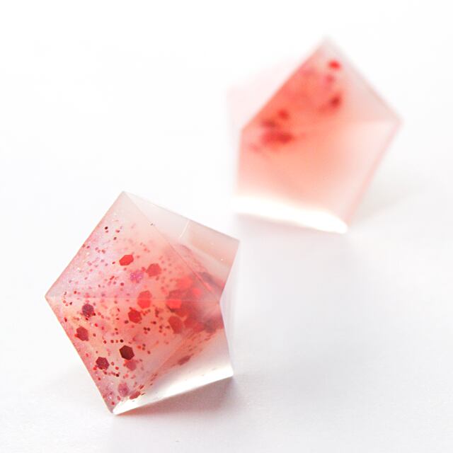 温度で色の変わるカラーをクリスタルレジンで閉じ込めたペンタゴンサーモピアスです。