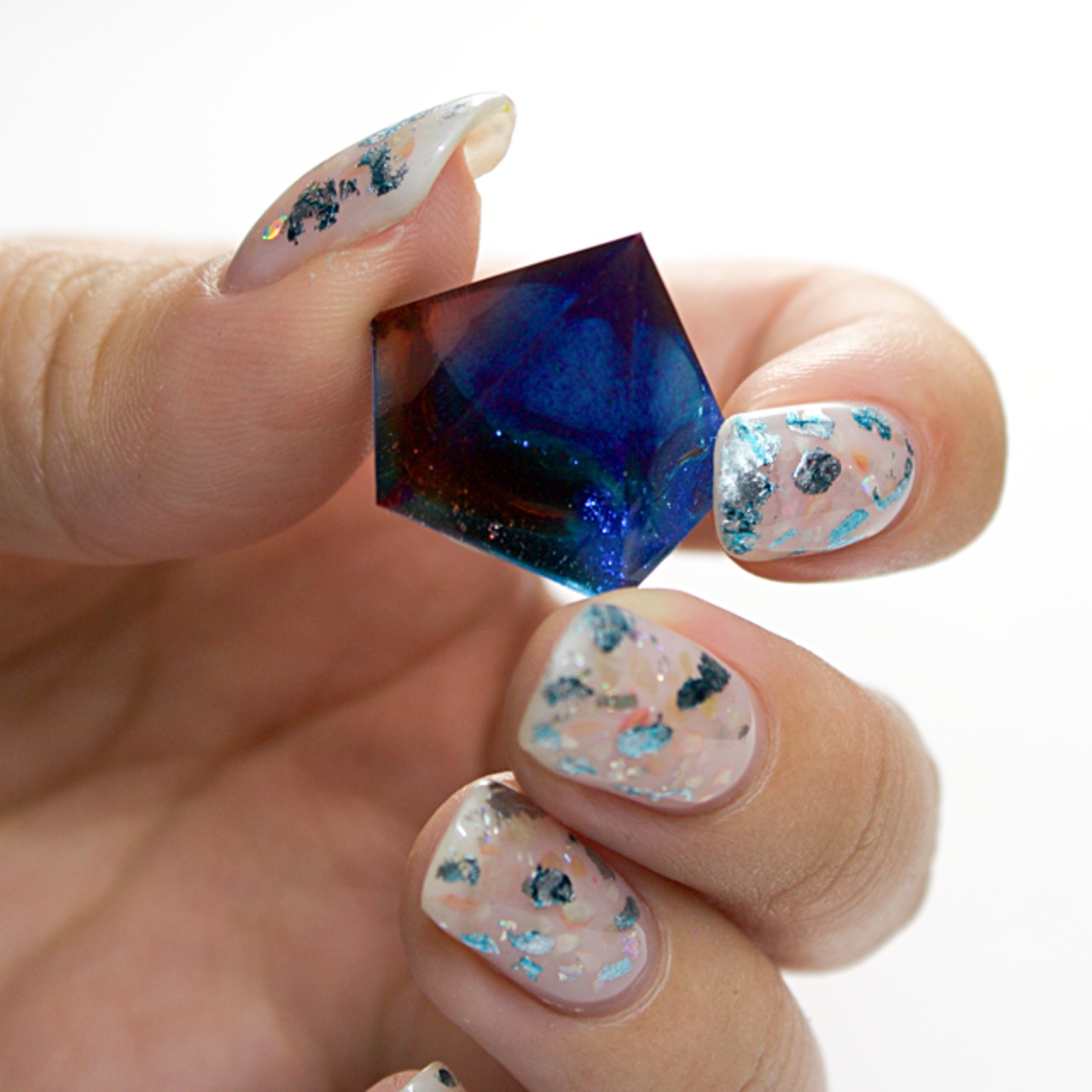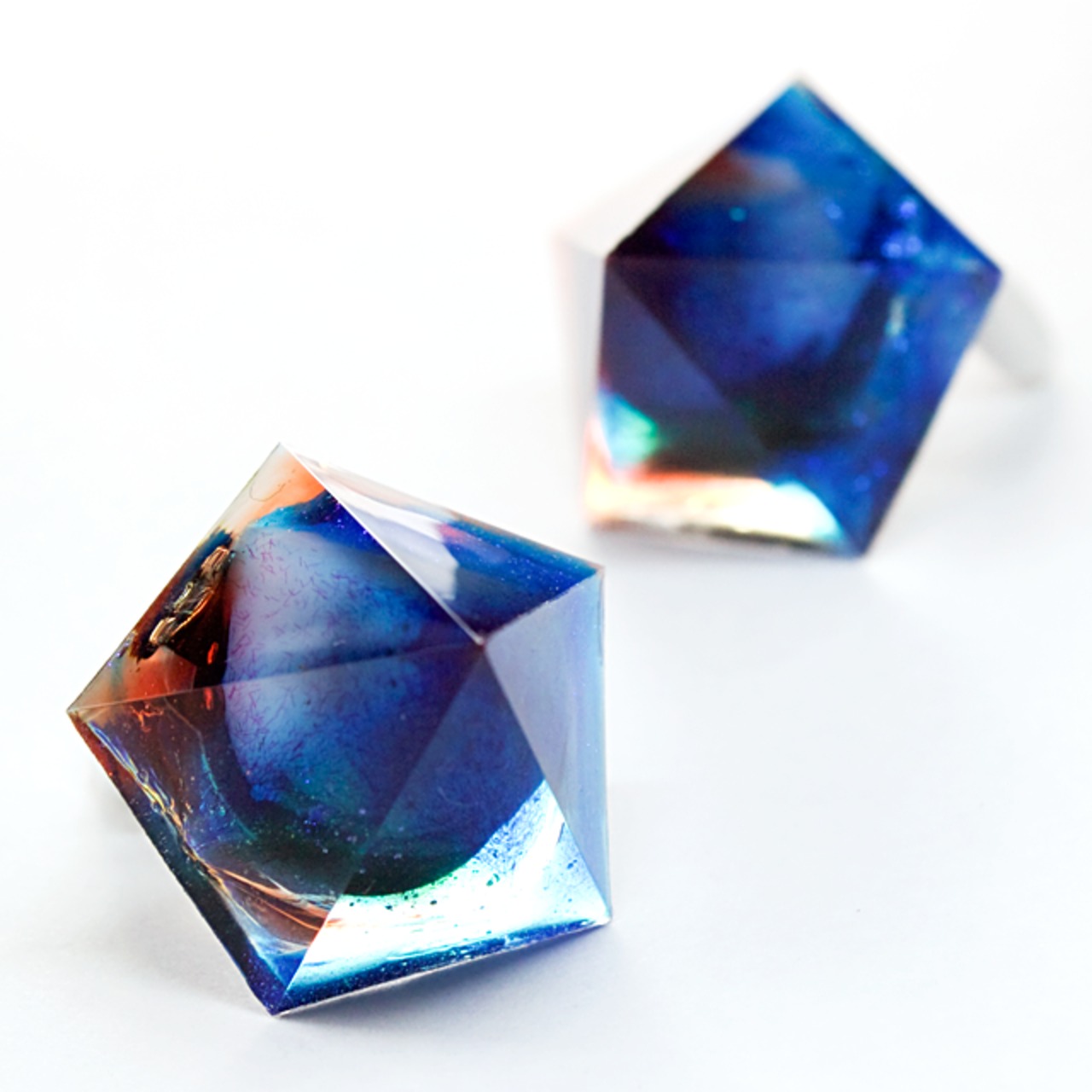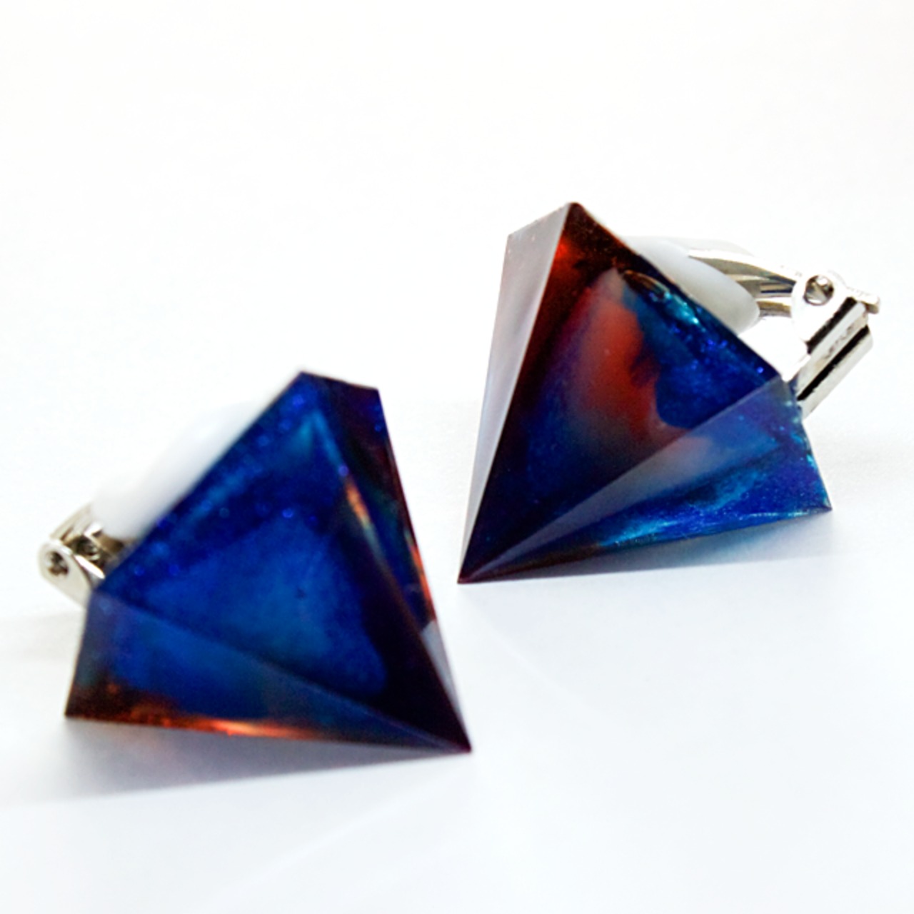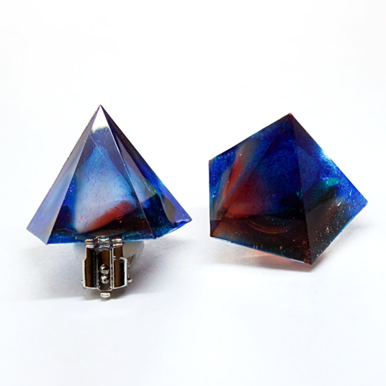 ブルー、レッド、ホワイトのカラーをクリスタルレジンで閉じ込めたペンタゴン型のイヤリングです。